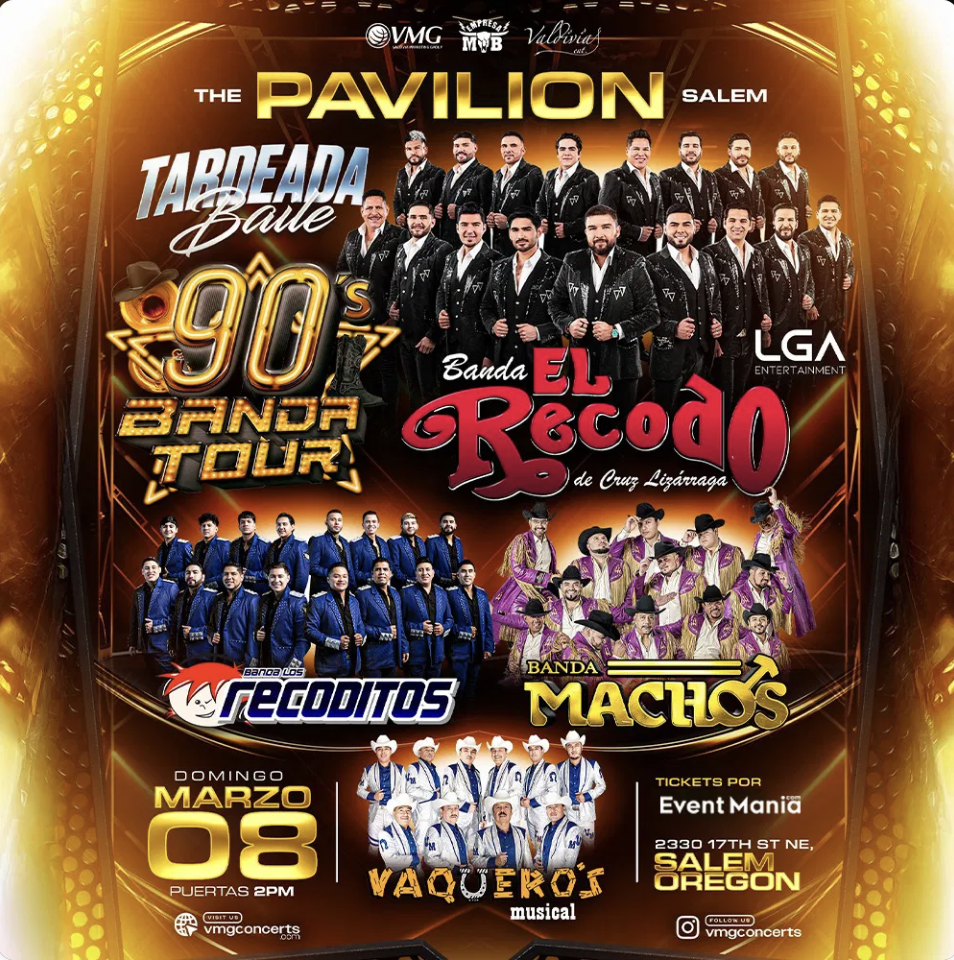 Experience live performances by Banda El Recodo de Cruz Lizárraga, Banda Machos, Banda Los Recoditos, and Vaqueros Musical—all sharing one stage for an energetic celebration filled with classic hits and non-stop dancing.