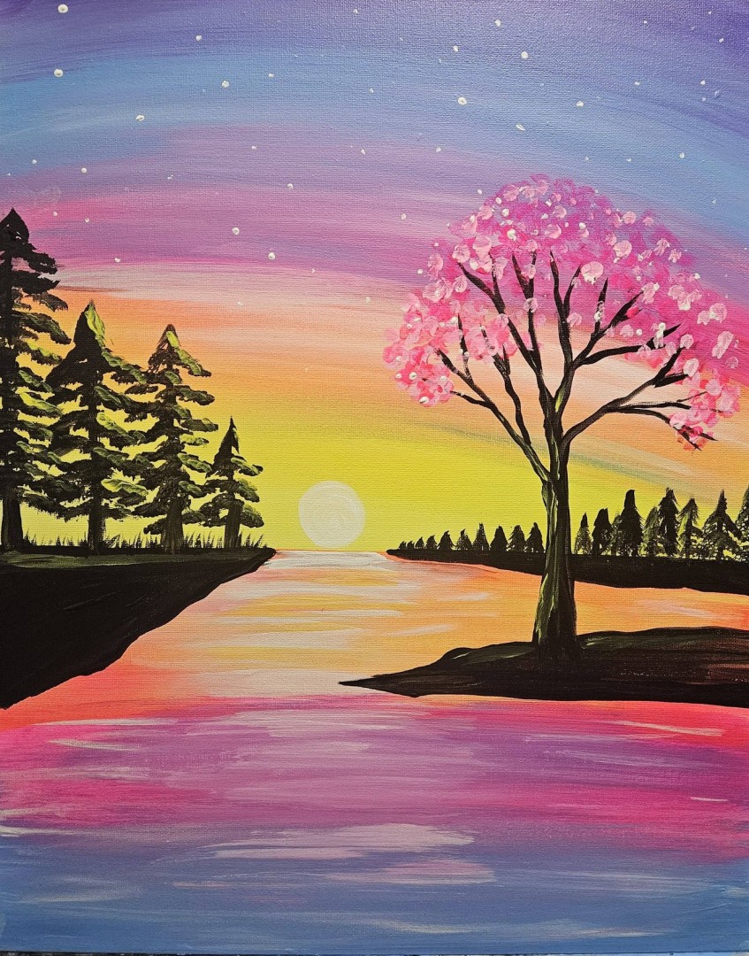 FUN Paint-Party for All Ages - No experience required - All supplies included - Painting "Spring Reflection" - Use Website Link for More Info & to Register.