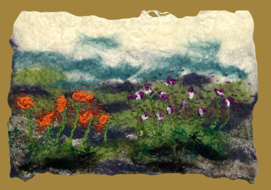 Michele Ballantyne is coming back to teach you wet felting techniques and guide you through creating your very own work of felt art! Wet felting can be done by anyone and is a fun, creative, interactive way to recreate the world around you in an abstract way. The design can be up to 320 square inches, whether that be in a square, rectangle, or multiple smaller designs. Makes a great gift, or activity! Michele will supply all the wool for felting in a large of assortment of colors, as well as silk gauze, other decorative fibers, and yarns that can be added then, or later on!