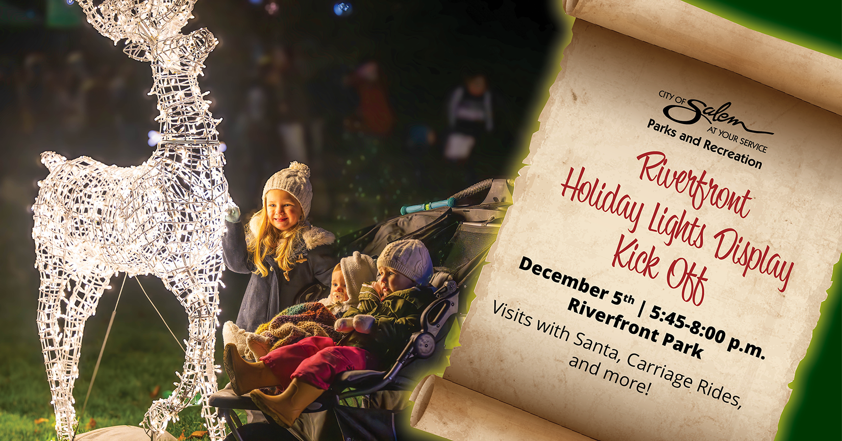 Join Parks and Recreation in Riverfront Park on December 5, 2025, 5:45-8:00 p.m., as we kick off the holiday season! There will be visits with Santa, carriage rides, and more.