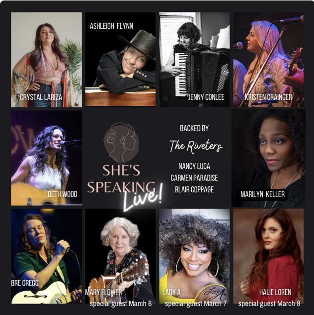 Join us for an inspiring evening featuring Crystal Lariza, Ashleigh Flynn, Jenny Conlee, Kristen Grainger, Beth Wood, Marilyn Keller, Bre Gregg, and very special guest Mary Flower each bringing their own dynamic style and perspective. These remarkable artists will be backed by the phenomenal house band The Riveters — Nancy Luca, Carmen Paradise, and Blair Coppage — delivering a rich, vibrant musical foundation that elevates every performance.