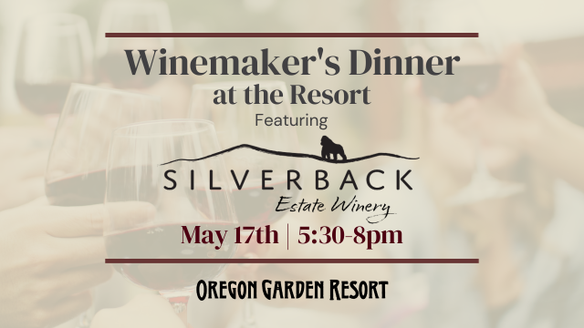 Join us in welcoming Silverback Estate Winery for a signature wine dinner in the Orchid Ballroom at the Oregon Garden Resort! Enjoy a five-course menu accompanied by hand-selected Silverback Wines. In addition to delicious plates, this is also a learning experience where a Silverback Estate Winery expert will guide you through the tasting notes of each wine pairing.